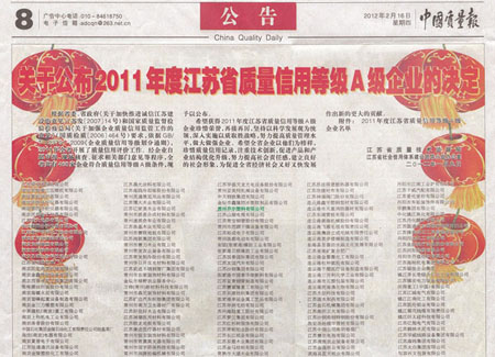 江苏省质量信用A级企业 |